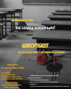 • Bedingungslose Freilassung: Diplomatischer Druck zur unverzüglichen Freilassung aller Lehrkräfte, Studierenden und Schülerinnen und Schüler, die in Haftanstalten und „Jugendbesserungseinrichtungen“ gefoltert werden.